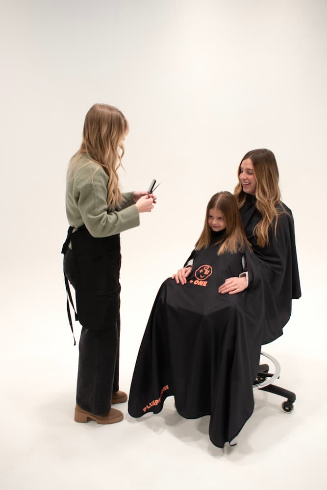 With two neck openings and a shared design, it creates a calmer, more comfortable haircut experience for kids, parents, and stylists alike.